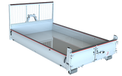• Las compuertas son de sección hueca, lo que confiere una gran solidez y limita su deformación. De hecho, si se produce un impacto de la carga en el interior, no se apreciará visiblemente desde el exterior. Además, el labio de estanquidad situado en la parte inferior de la compuerta garantiza una mayor retención de cargas como, por ejemplo, la arena.